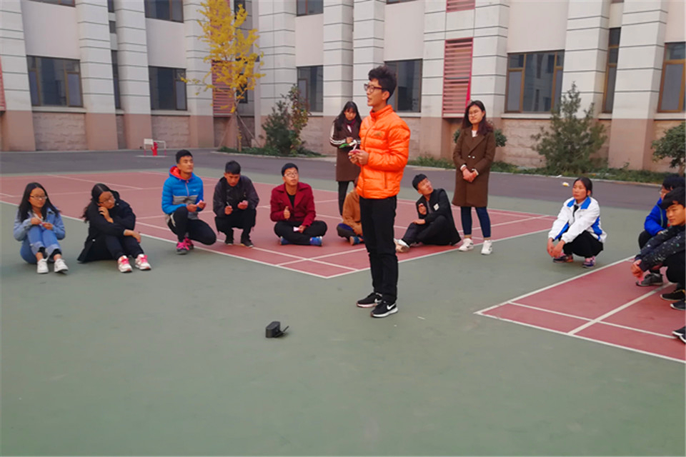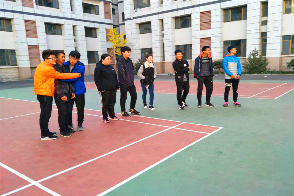 “贪吃蛇大作战”环节中,同学们一只手搭在前一个同学的肩上,另一只手抬起前一个同学的一只脚,原地单腿跳,当一支队伍接上以后一起前进。“这个环节需要组员之间紧密配合才能完成,不仅考验体力和智慧,也考验同学之间的协调性和默契度。只有一支队伍保持一样的速度前进,才能保证‘贪吃蛇’不会从中间断开。”李昭林如是说道。