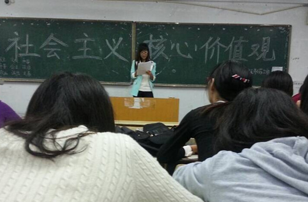 9月28日,制药1301班举办了以“社会主义核心价值观”为主题的政治学习活动。本次活动由陈美洁同学主持,制药1301班全体同学参加。
