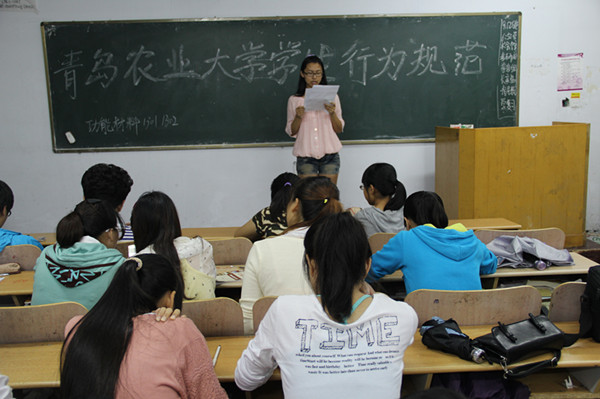 为进一步响应学院的号召,营造良好、和谐、有序的校园环境,提升学生综合素质,稳步促进校风、学风建设。9月14日晚,功能材料1301班在教学区开展以学习《青岛农业大学学生行为规范》为主题的政治学习活动。班会由团支书葛梦瑶主持。