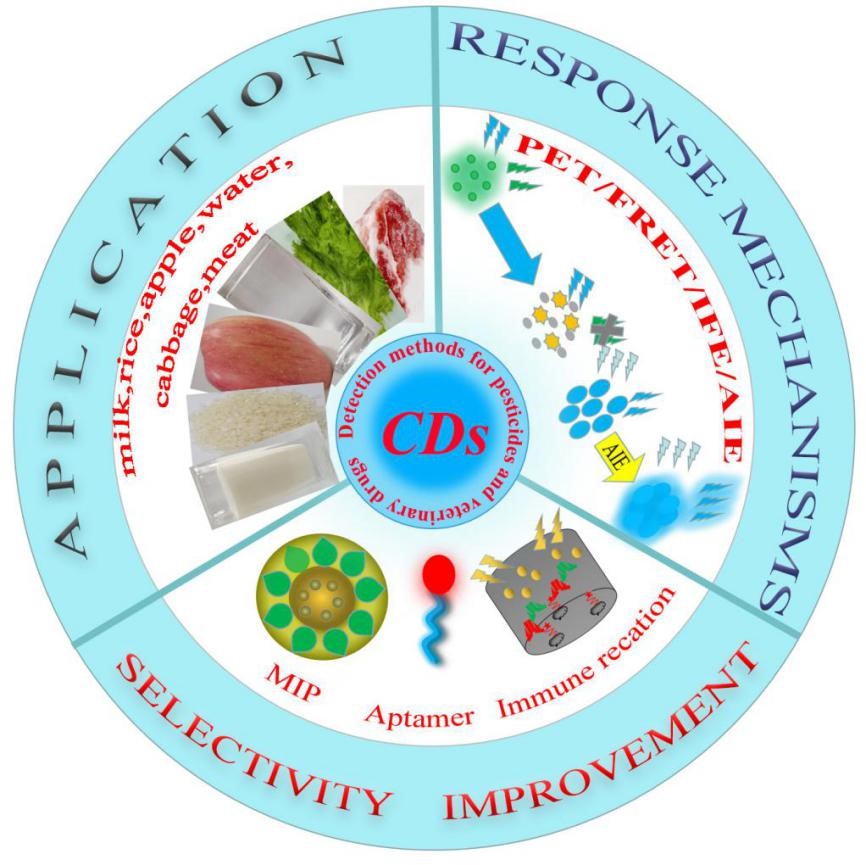 基于碳点的农兽药检测方法的响应机理、选择性提高策略及应用