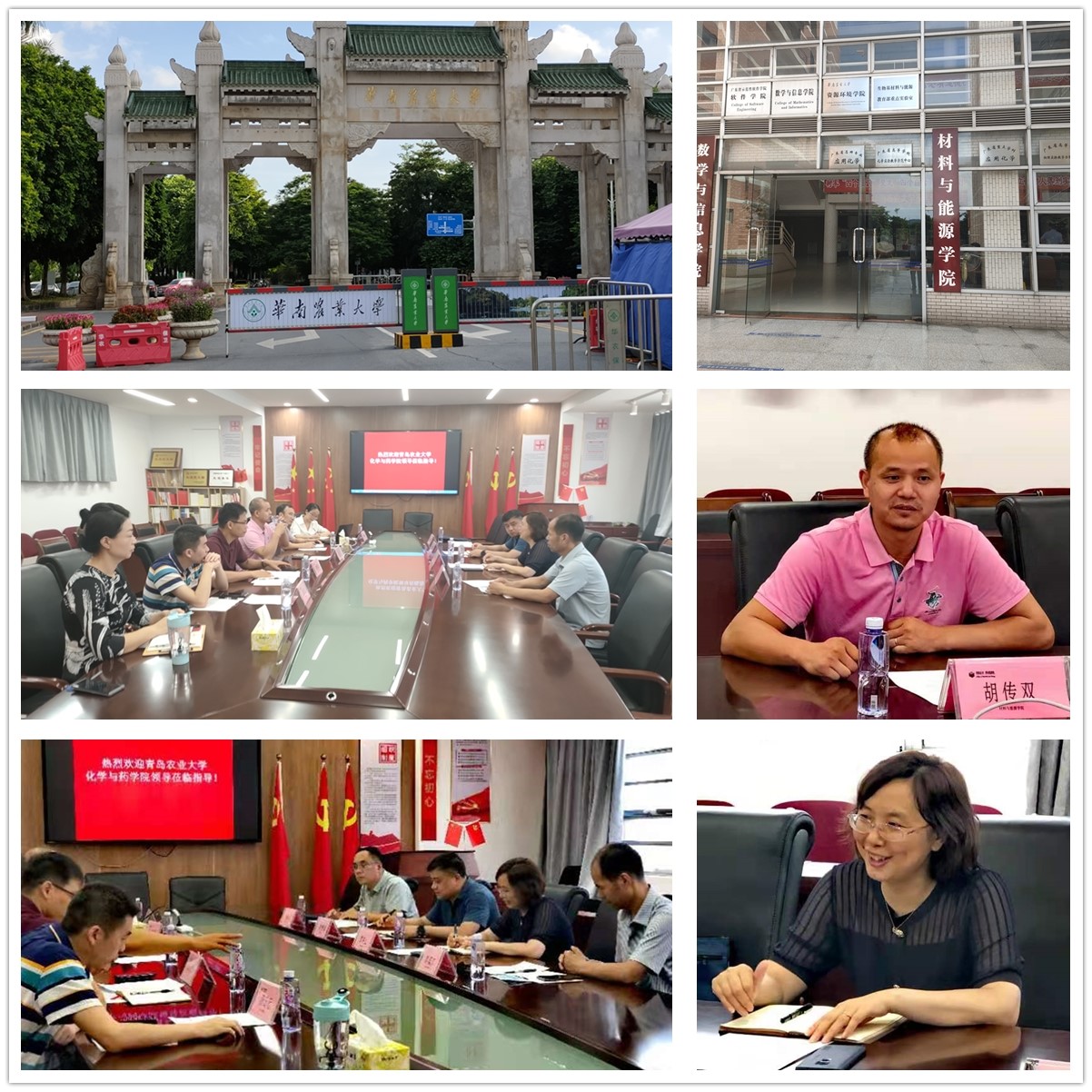 为进一步推进太阳成集团tyc234cc学院学科建设以及应用化学国家一流专业建设点的实验室建设,2021年7月10日-11日,院长龚良玉、副院长徐鲁斌、副院长郝双红和应用化学专业负责人王修中一行四人,分别前往华南农业大学能源与材料学院和仲恺农业工程学院化学化工学院进行实地走访调研。