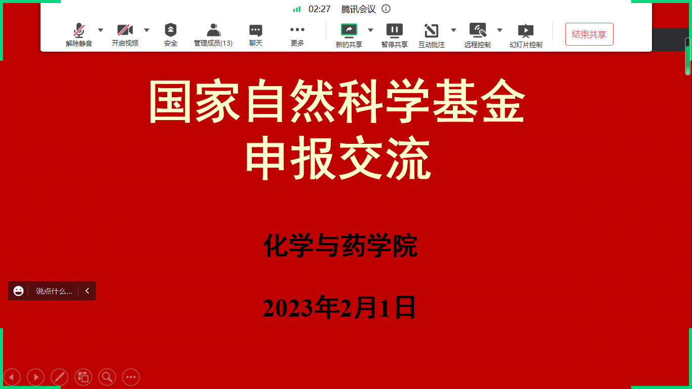 此次基金申请交流分享会是我院国家自然科学基金申请的系列活动之一,促进了我院教师深入交流、相互学习、共同提高,为进一步理清思路、写好申报书提供了有益借鉴,为推动我院2023年国家自然科学基金项目的申报奠定了基础。