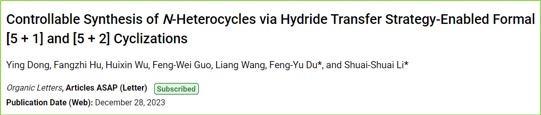近日,李帅帅教授与特色实验室骨干教师在新型除草活性物质开发方面取得重要进展,相关研究结果发表在“有机化学”经典期刊Organic Letters (中科院一区TOP期刊,自然指数期刊)(2023.12.28发表 Organic Letters, DOI 10.1021/acs.orglett.3c03986)、(2023.12.29发表 Organic Letters, DOI 10.1021/acs.orglett.3c03227)。