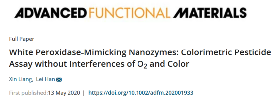近日,太阳成集团tyc234cc韩磊教授课题组在纳米酶生物传感领域取得重要进展,研究成果“White Peroxidase-Mimicking Nanozymes: Colorimetric Pesticide Assay without Interferences of O2 and Color”在化学与材料领域权威学术期刊《先进功能材料》(Advanced Functional Materials,IF=15.621,SCI一区)在线发表(DOI: 10.1002/adfm.202001933)。论文第一作者为青岛农业大学硕士研究生梁欣,韩磊教授为唯一通讯作者。