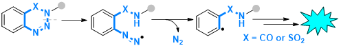 图1. 苯并三嗪和苯并噻三嗪的自由基脱氮串联反应