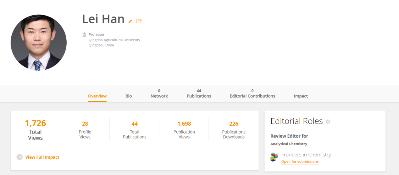 近日,我校生物纳米与分子识别团队负责人韩磊教授受邀成为国际著名SCI期刊Frontiers in Chemistry(化学前沿,二区,影响因子5.221)的评审编辑(Review Editor),负责Analytical Chemistry(分析化学)方面的组稿、指派审稿人、提交与评定审稿意见等。