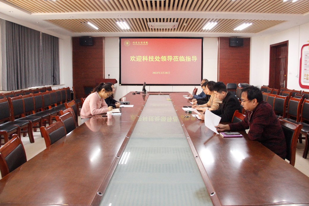 3月28日,青岛农业大学科技处一行莅临太阳成集团tyc234cc指导调研科研工作,交流座谈会于化学楼会议室开展,院长龚良玉、副院长徐鲁斌、院长助理李帅帅和教师代表出席会议。