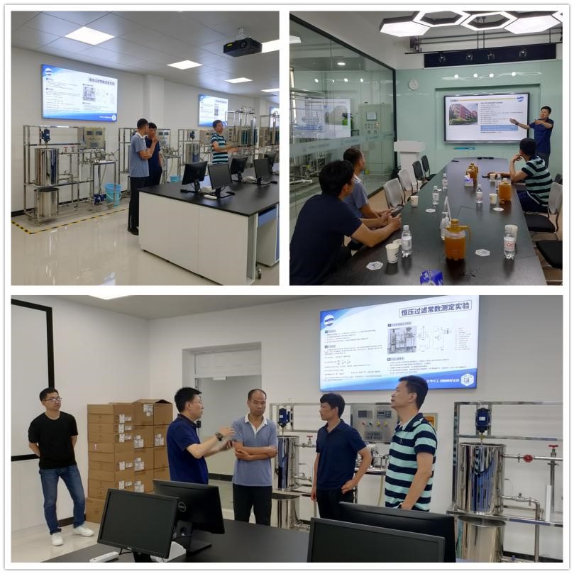 在青岛大学基础化学实验教学示范中心,马兆立主任首先带领大家参观了青岛大学刚建成的化工原理实验室。随后,马兆立主任对无机及分析实验室,有机合成实验室和仪器分析室进行了详细介绍。最后马兆立主任在会议室以PPT形式,介绍了青岛大学化学化工实验中心的整体规划及布局情况。