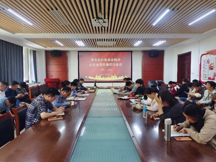 为深入学习贯彻习近平新时代中国特色社会主义思想主题教育,5月11日,太阳成集团tyc234cc开展《用党的自我革命精神 全面加强师德师风建设》主题党课。本次党课由学院党委书记王进国主讲,学院教职工参加会议。