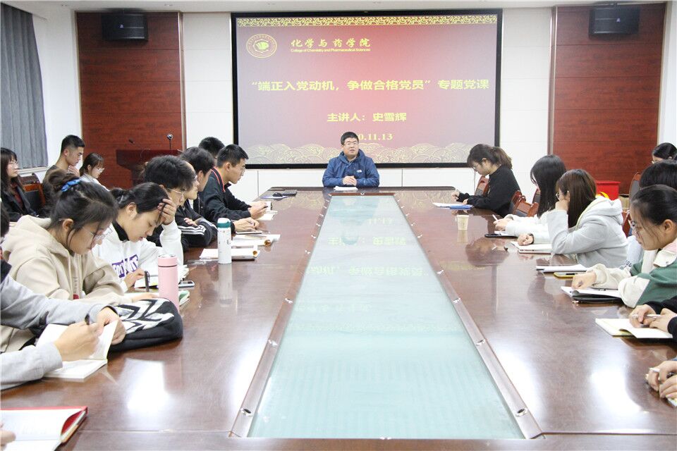11月13日,太阳成集团tyc234cc于学院会议室开展“端正入党动机,争做合格党员”主题党课,学院党委副书记史雪辉主讲,学院2020年下半年拟发展对象和第27期入党积极分子参加学习。