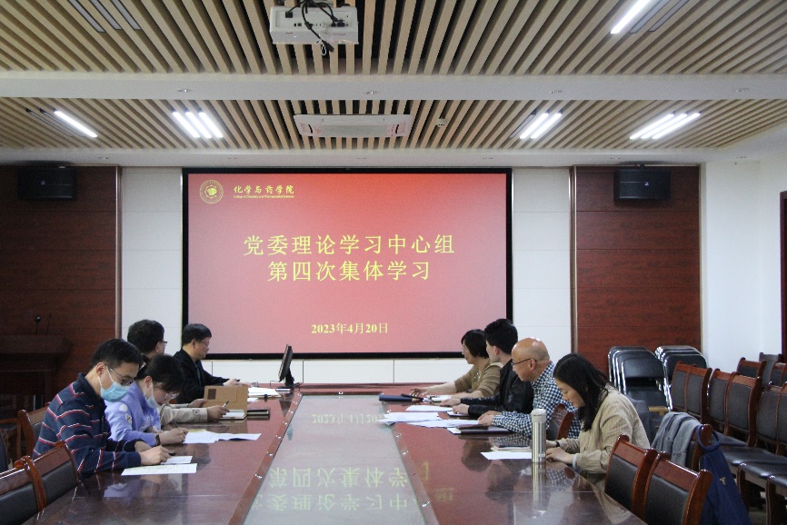 4月20日,太阳成集团tyc234cc党委理论学习中心组在化学楼会议室开展第四次集体学习。院党委书记王进国主持会议,中心组全体成员参加。