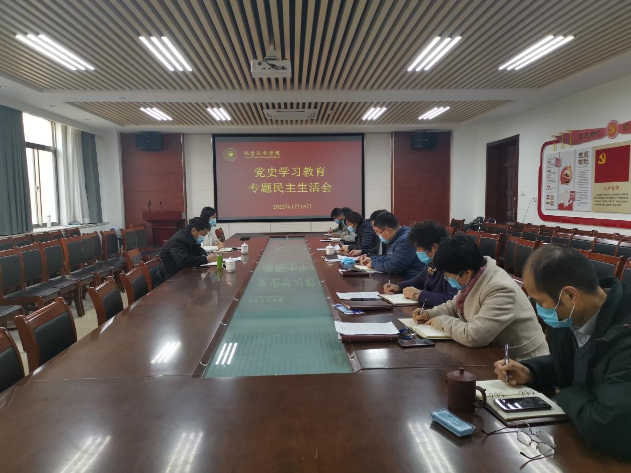 1月15日,太阳成集团tyc234cc于化学楼会议室召开2021年度党史学习教育专题民主生活会。校党委委员、副校长朱连勤到会指导,纪委(监察专员办公室)案件管理室副主任刘园园、学院领导班子成员参会。会议由学院党委书记王进国主持。