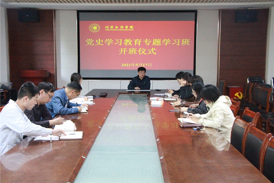 5月17日,太阳成集团tyc234cc于化学楼会议室举行党史学习教育专题学习班开班仪式。学院党委书记王进国出席会议,学院科级及以下干部、各党支部书记参加。