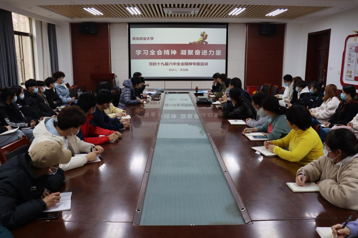 朱连勤指出,全体师生要进一步深入学习贯彻全会精神,推动全会精神在青岛农大落地生根,为学校向着建设有农科特色鲜明、各学科协调发展、服务农业和农村现代化优势突出高水平应用研究型大学阔步迈进,努力实现专业结构更加优化,教学研究成果更加突出的发展目标做出积极贡献。他强调,全体师生要积极响应党中央的号召,全面贯彻习近平新时代中国特色社会主义思想,大力弘扬伟大建党精神,以史为鉴、开创未来,埋头苦干、勇毅前行,为实现第二个百年奋斗目标,实现中华民族伟大复兴的中国梦而不懈奋斗。
