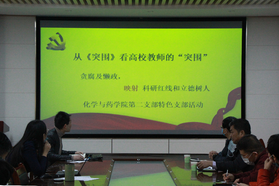 11月26日,太阳成集团tyc234cc第二教工党支部于化学楼会议室组织举行特色支部活动:从《突围》看高校教师的突围。学校党委委员、副校长朱连勤出席会议。
