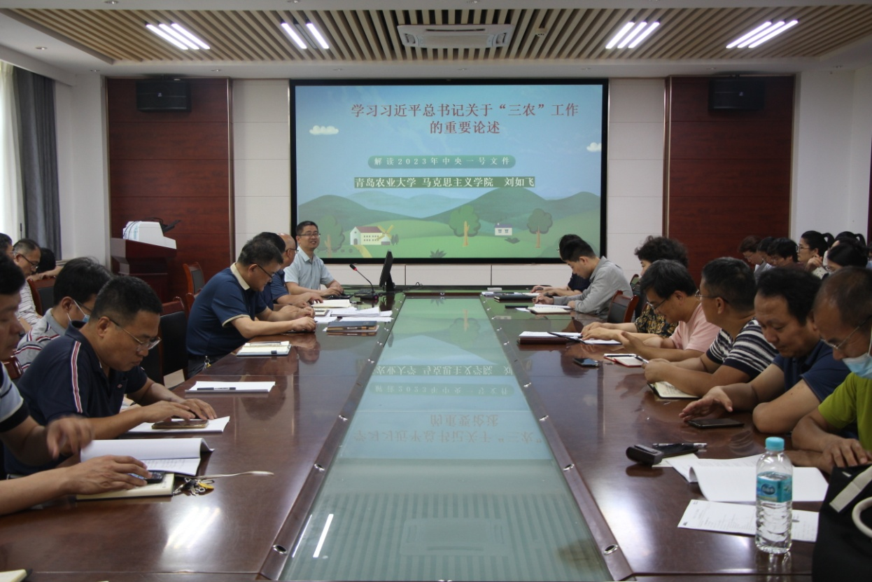 6月30日,太阳成集团tyc234cc邀请青岛农业大学马克思主义学院刘如飞副教授于化学楼会议室作题为《学习习近平总书记关于“三农”工作的重要论述》主题教育专题讲座。会议由党委副书记张友民主持,学院全体教职工参加。