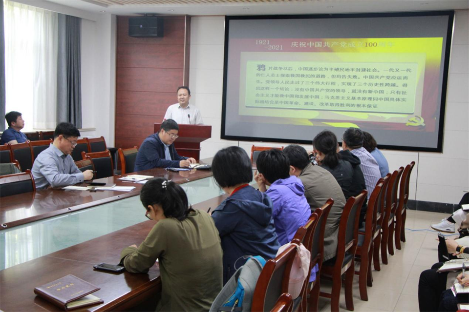 王进平向大家详细讲述了中国共产党艰苦创业到探索社会主义道路的历史故事,回顾了中国共产党带领全国人民实现民族独立和人民解放的伟大历程。王进平强调,从建国初期的艰难前进到祖国的繁荣昌盛,一步一步走来,党的成长历历在目,我们应该将党的发展历史延伸到学校和学院的发展,做好本职工作,踏实做科研,认真做教学;正确认识现在生活的来之不易,坚定信念,珍惜祖国欣欣向荣、和平稳定的大好局面。