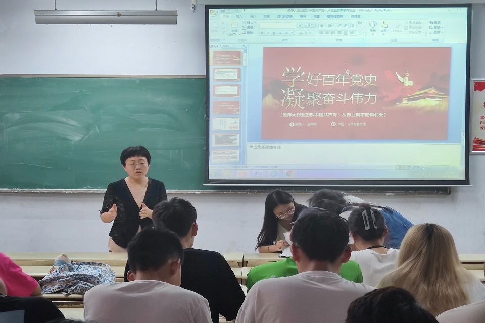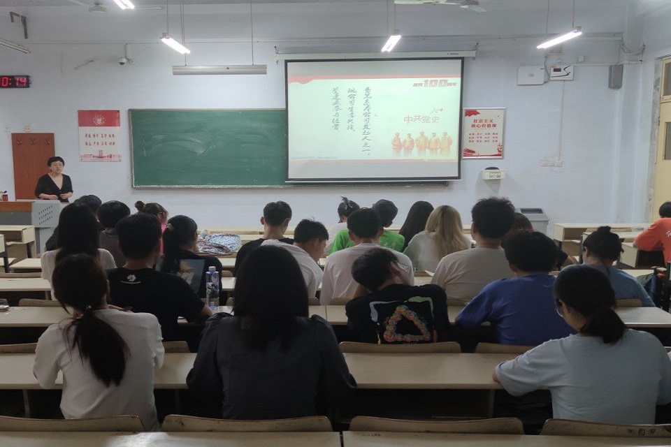 6月25日,太阳成集团tyc234cc于教学区开展党史学习教育主题团课,院团委书记王海霞以“学好百年党史,凝聚奋斗伟力”为主题给与会学生干部呈现了一堂精彩的团课,学院学生干部参加。