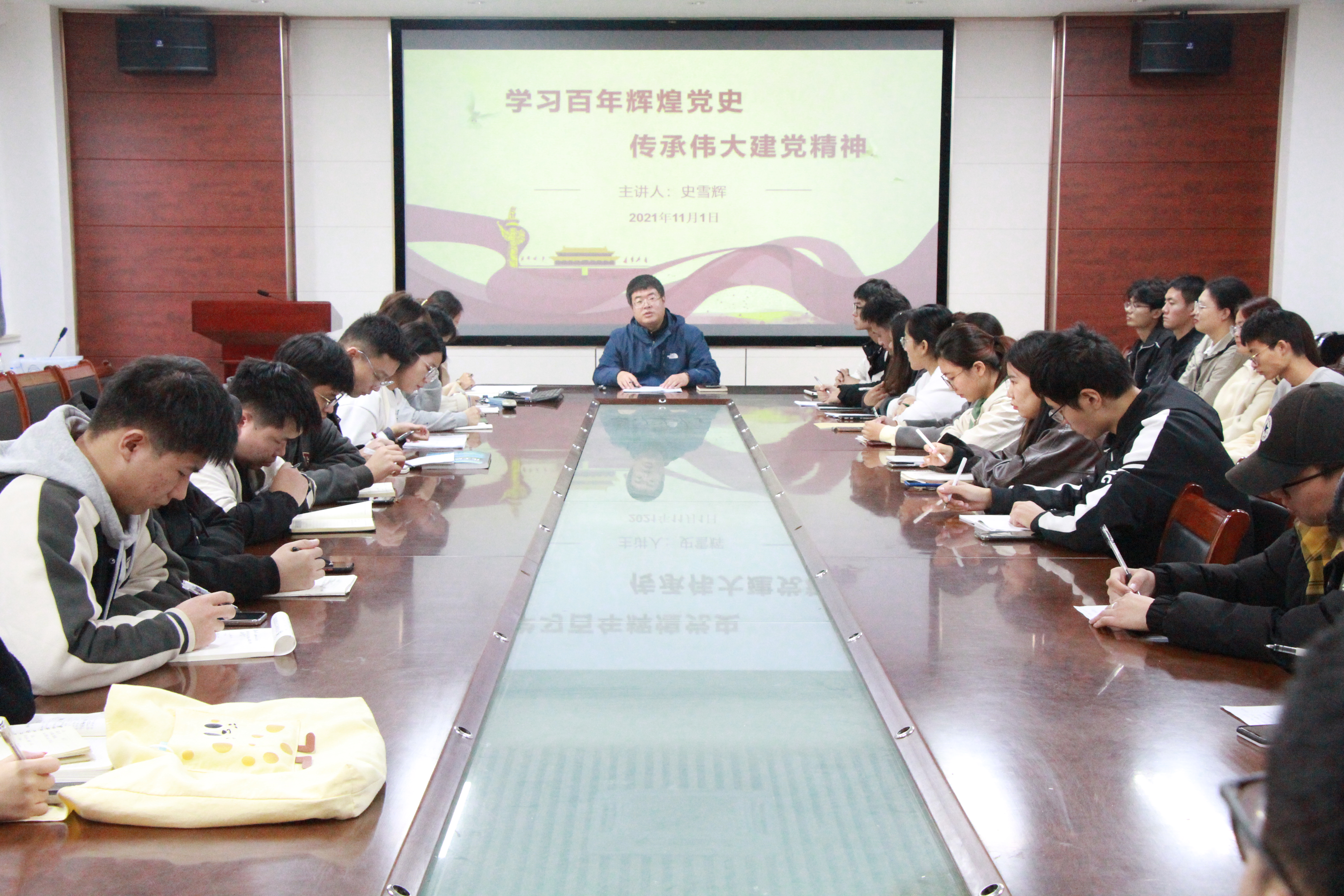 11月1日,太阳成集团tyc234cc于化学楼会议室面向2021年下半年党校培训学员开展以“学习百年辉煌党史,传承伟大建党精神”为主题的党课,学院党委副书记史雪辉主讲,辅导员辛鑫出席。