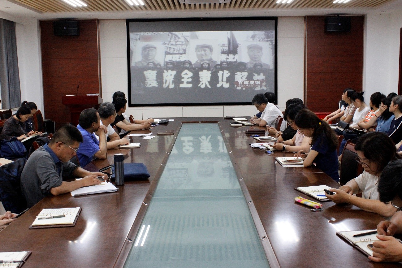会上,与会教职工集中观看了系列纪录片《百炼成钢—中国共产党的100年》25-28集的内容,纪录片讲述了七届二中全会对全国革命胜利的指导性作用,记录了从新中国成立到抗美援朝战争的伟大胜利,再到土地改革的完成等一系列重大历史事件。这些伟大事件中展现出来的宝贵精神财富跨越时空、历久弥新,凝聚着中国共产党人艰苦奋斗、开拓进取、牺牲奉献的伟大品格。王进国指出,全体教职工要认真学习党的历史,了解过去才能看清前进的方向,了解过去才能把握今天,把握今天才能创造更加辉煌明天。