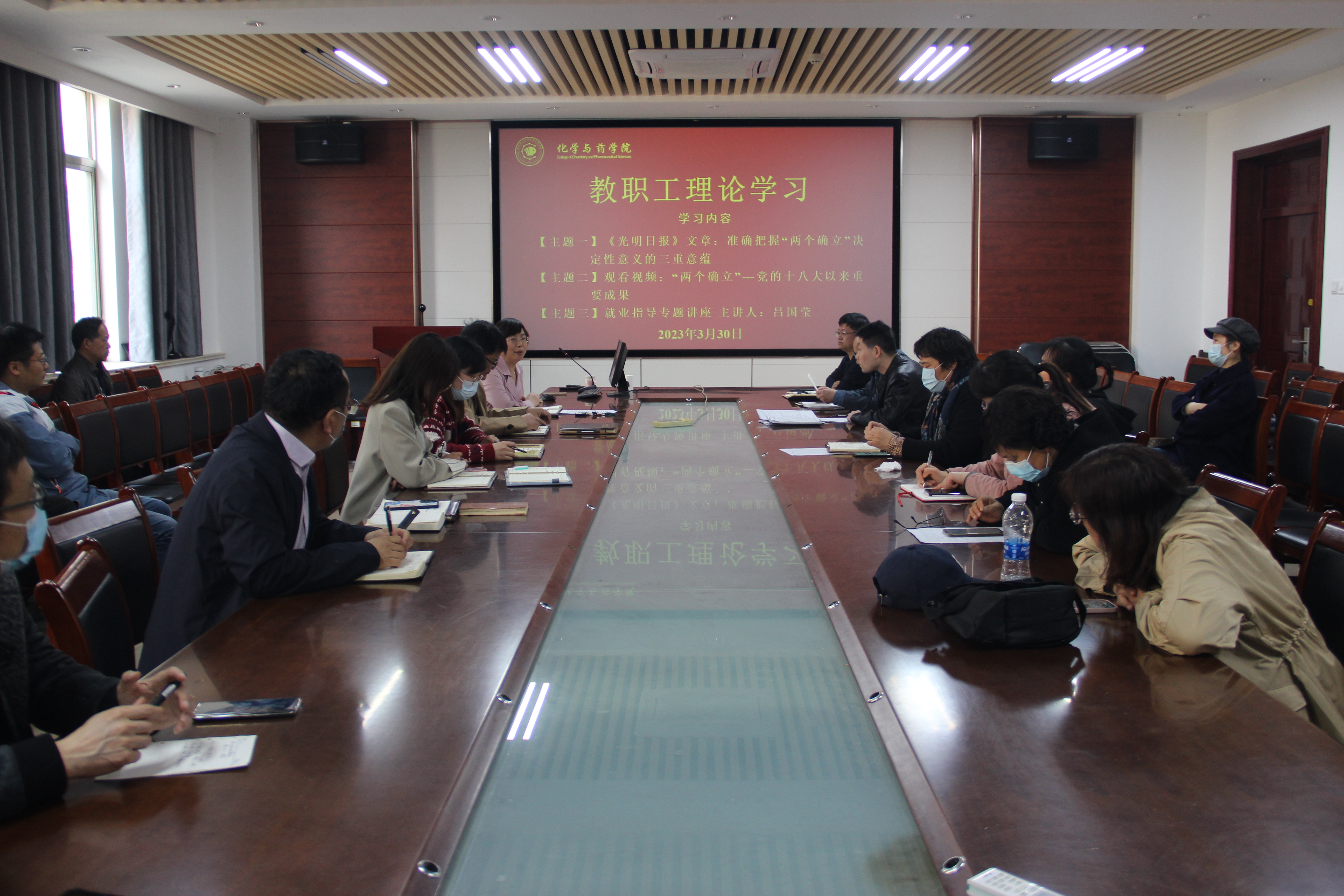 3月30日,太阳成集团tyc234cc于化学楼会议室开展教职工理论学习,会议由学院党委书记王进国主持,全体教职工参加。