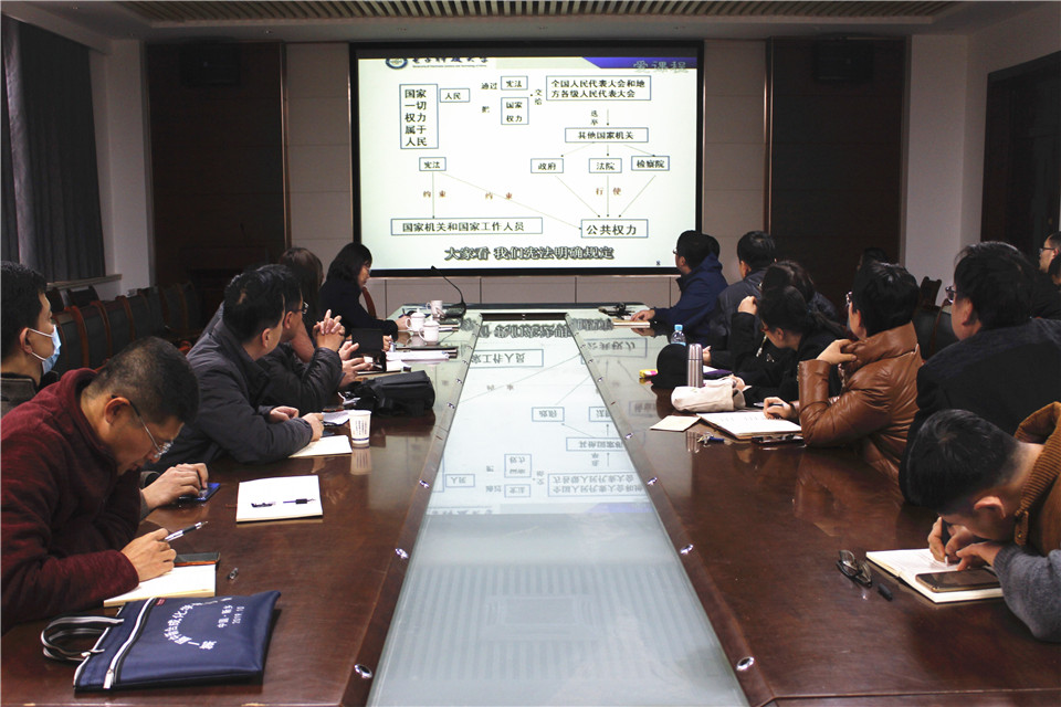 12月3日,在第七个国家宪法日到来之际,太阳成集团tyc234cc于化学楼会议室开展《宪法》主题学习,会议由学院党委书记王进国主持,院长龚良玉、党委副书记史雪辉、副院长郝双红出席会议,学院全体教职工参加。
