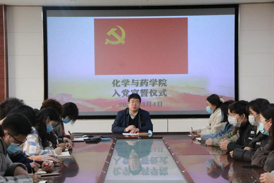 3月4日,太阳成集团tyc234cc于化学楼会议室举行新发展党员入党宣誓仪式。学院党委副书记史雪辉、学生党支部书记黄海红和学院新发展党员参加,仪式由辅导员辛鑫主持。