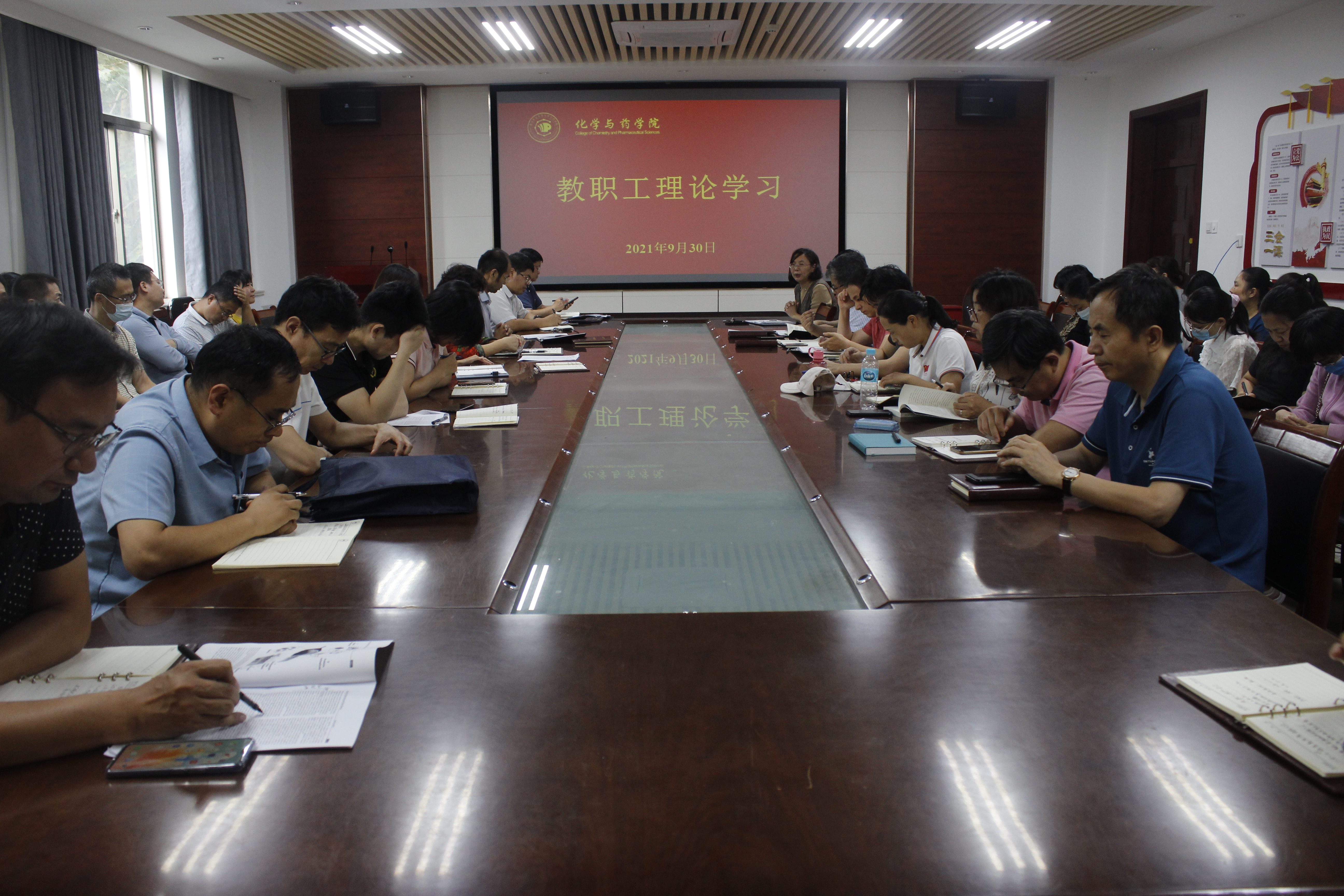 9月30日,太阳成集团tyc234cc于化学楼会议室开展教职工理论学习。会议由学院党委书记王进国主持,院长龚良玉,党委副书记史雪辉、党委专职组织员吕海涛,副院长徐鲁斌、郝双红出席,太阳成集团tyc234cc全体教职工参加。