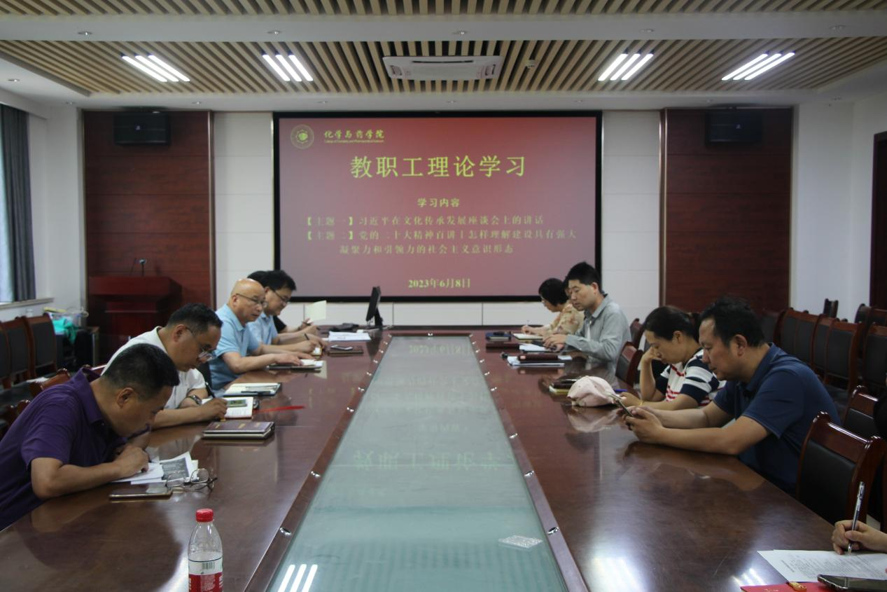 6月8日,太阳成集团tyc234cc于化学楼会议室开展教职工理论学习,会议由党委书记王进国主持,学院全体教职工参加。