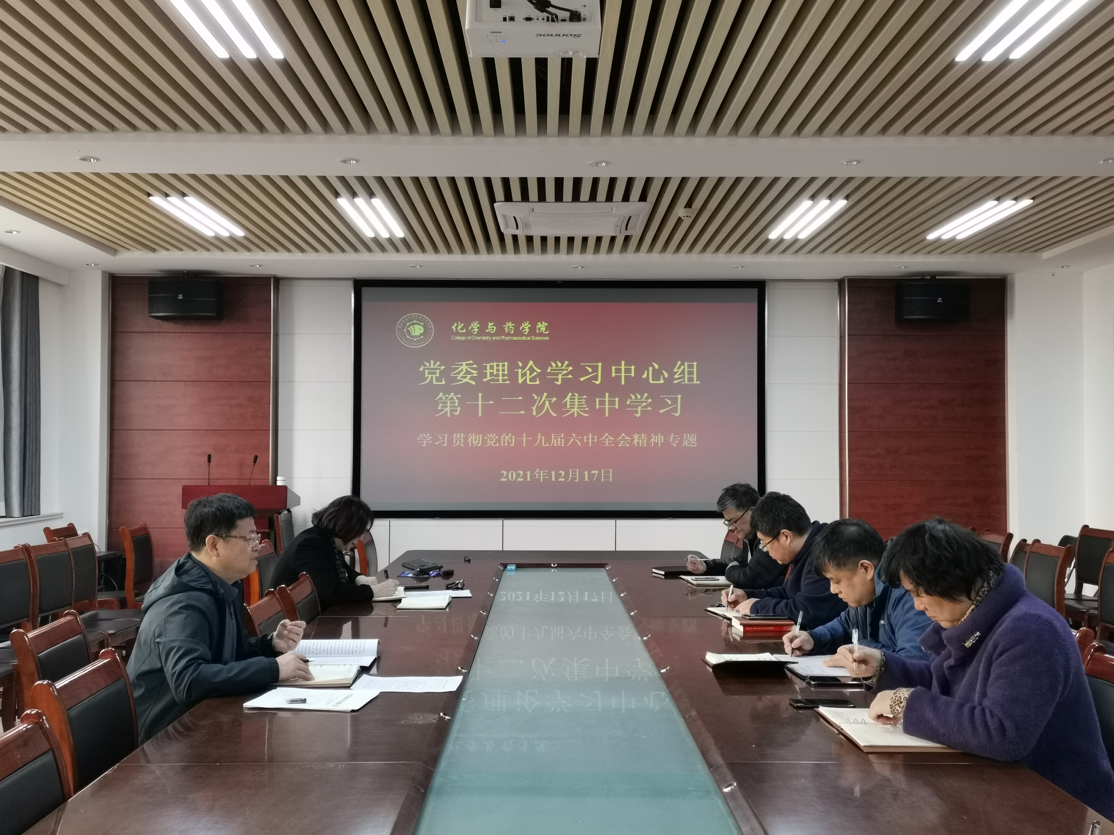 12月17日,太阳成集团tyc234cc党委理论学习中心组在学院会议室开展党的十九届六中全会精神专题学习暨2021年度第十二次集中学习,党委理论学习中心组成员参加学习。