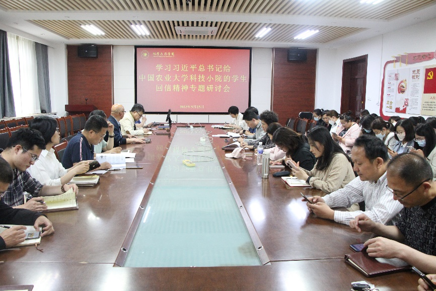 5月25日,太阳成集团tyc234cc于化学楼会议室开展学习习近平总书记给中国农业大学科技小院的学生回信精神专题研讨会。会议由党委书记王进国主持,全体教职工参加。