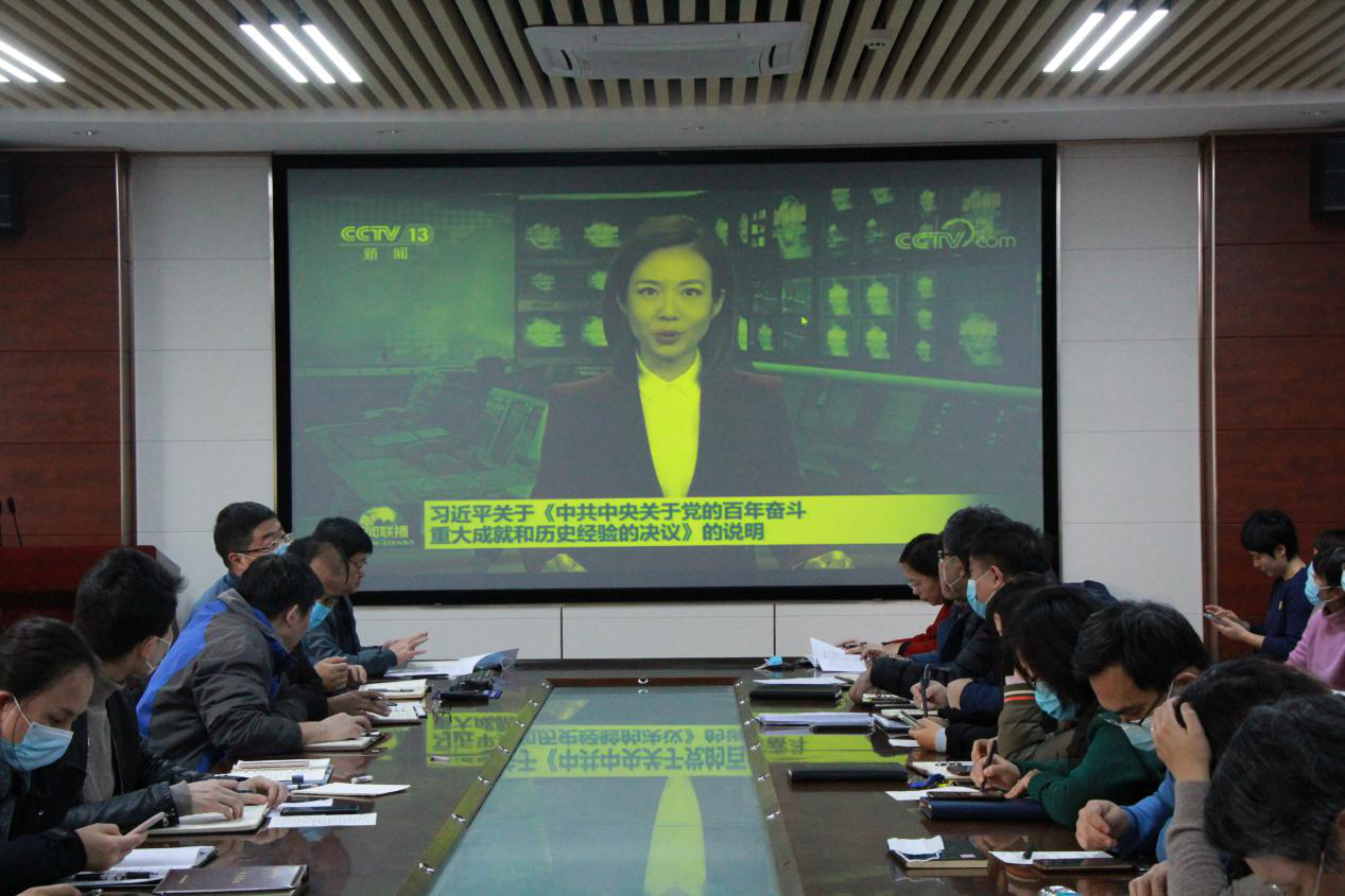 11月25日,太阳成集团tyc234cc于化学楼会议室开展党的十九届六中全会精神专题学习。会议由学院党委书记王进国主持,院长龚良玉,党委副书记史雪辉,党委专职组织员吕海涛,副院长徐鲁斌、郝双红出席,学院全体教职工参加。