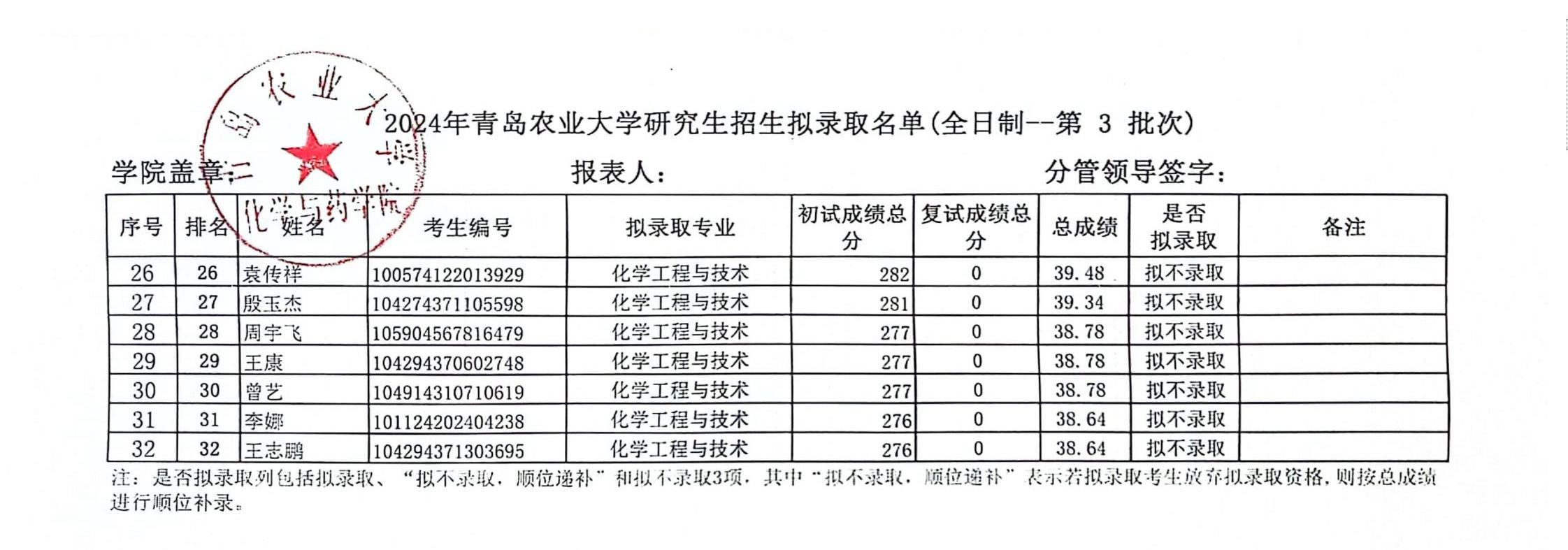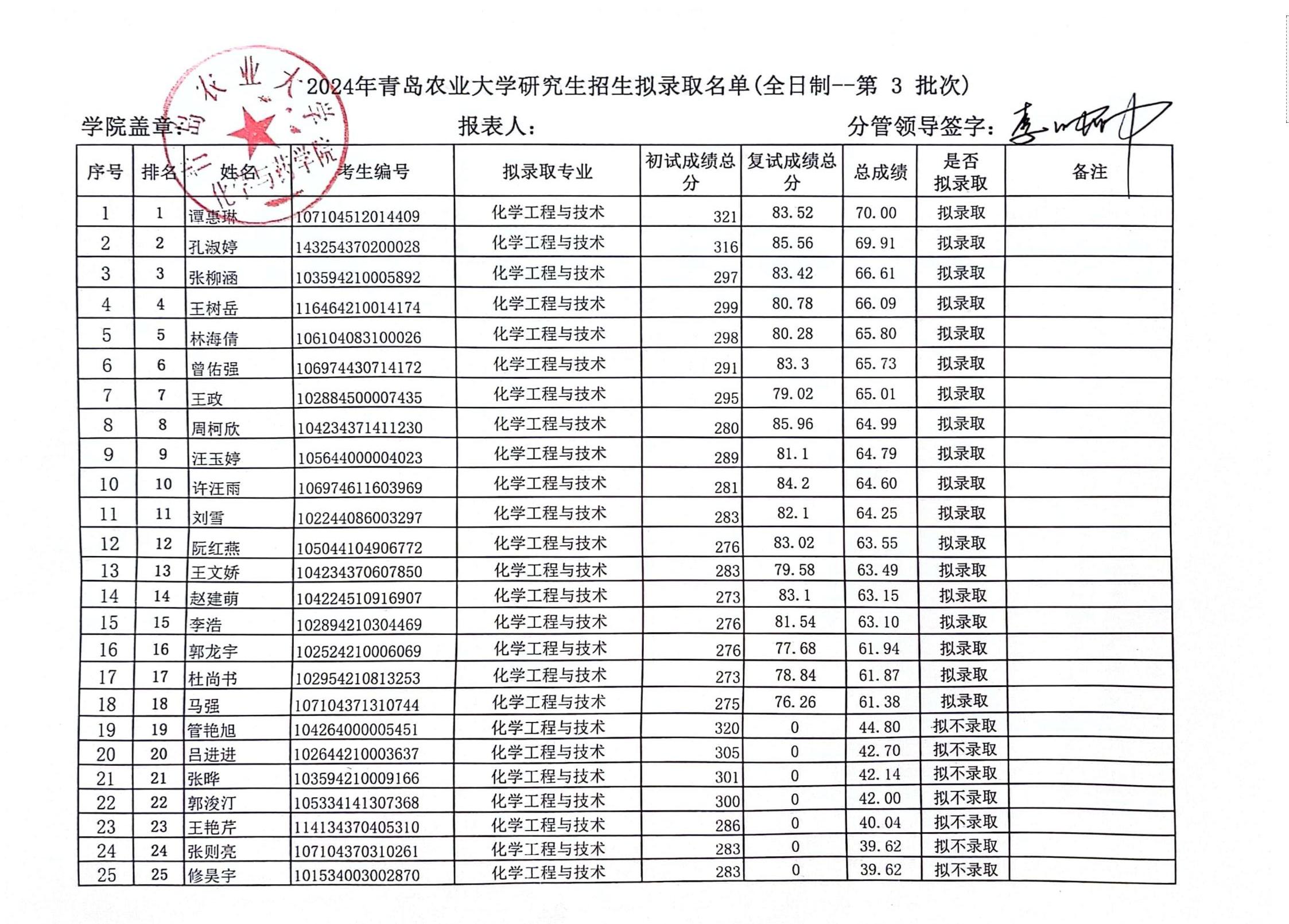 太阳成集团tyc234cc2024年硕士研究生拟录取名单--第三批次