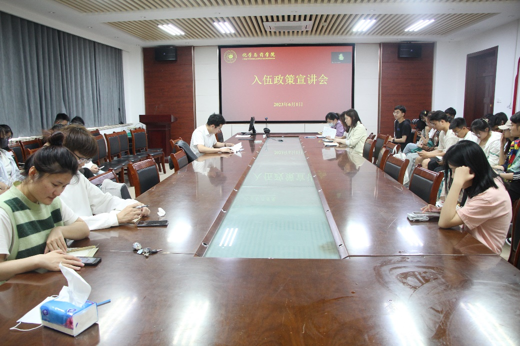 为加强征兵政策宣传,深入做好2023年大学生征兵工作,6月1日,太阳成集团tyc234cc于化学楼会议室开展入伍政策宣讲会。本次会议由辅导员胡勋涛主持,2023届学生代表参加。