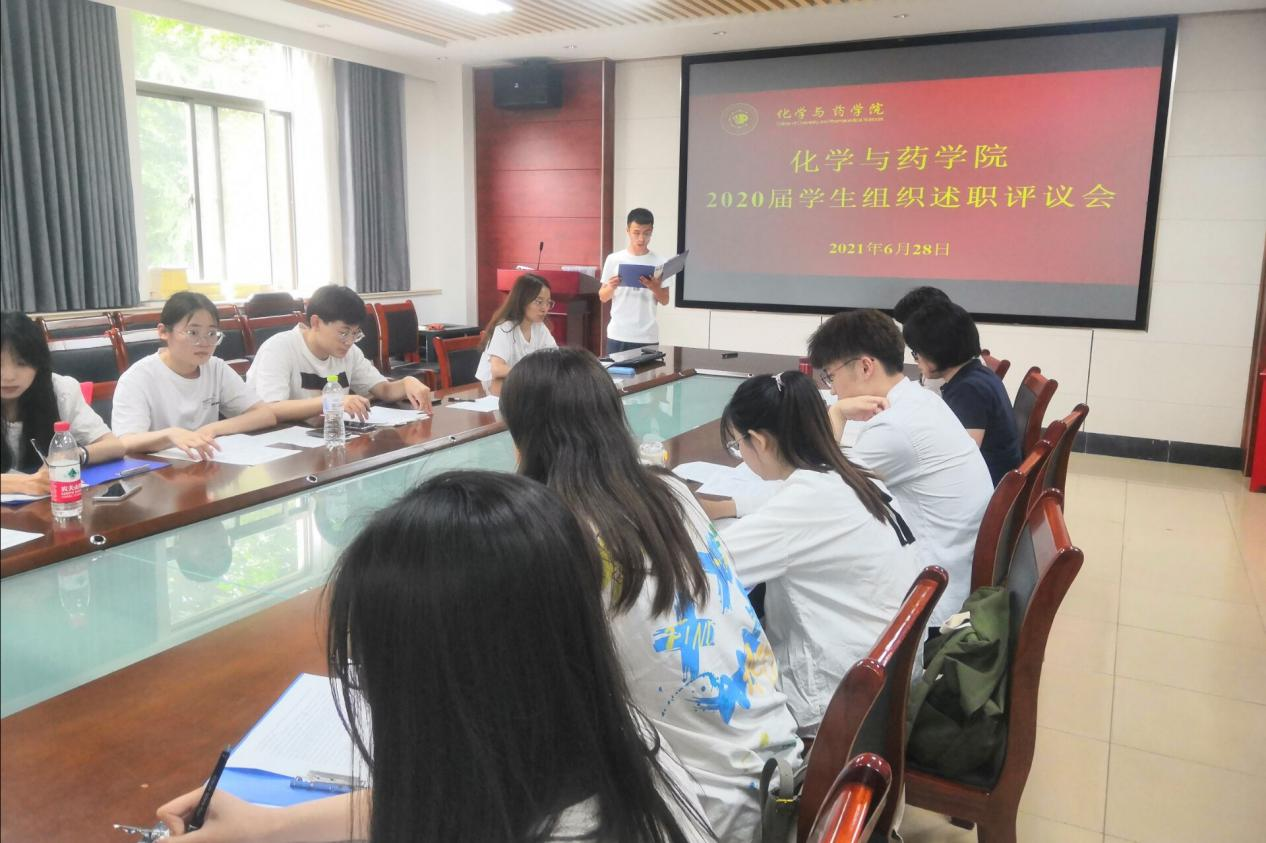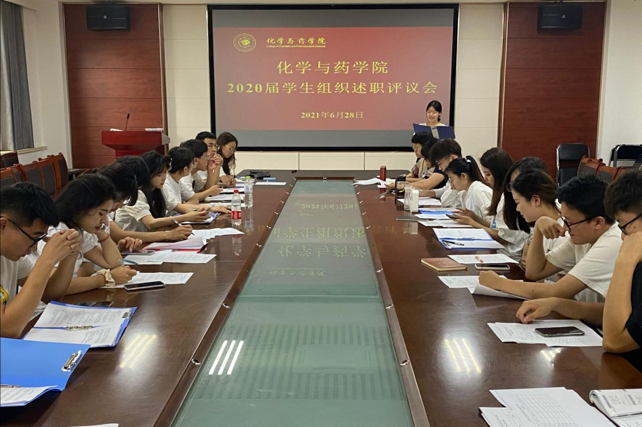 6月28日,太阳成集团tyc234cc在化学楼会议室召开2020届学生组织述职评议会议,团委书记王海霞,辅导员辛鑫、黄海红出席会议,学院学生会和学生发展服务中心全体主要干部参加评议会。