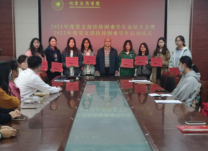 会上张友民宣读了2022年度党支部帮扶学生名单。随后, 2021年度受助学生代表郑美湘汇报了自己受扶持以来的思想、学习、生活、工作等情况。郑美湘向学院党委和全体党员老师表示感谢,表示将会更加努力学习,提高各方面的能力,做到德智体美劳全面发展。接着,张友民为2021年度党支部帮扶困难学生每人颁发了1000元的助学金。最后,张友民对受助学生提出几点希望和要求,一是希望同学们在思想上积极乐观、学习上刻苦认真、工作上认真负责、生活中不卑不亢;二是希望同学们能够经常与帮扶支部沟通交流,及时汇报自己的思想和学习等情况;三是希望同学们能够学会珍惜,常怀感恩之心,学好文化知识,奉献社会。