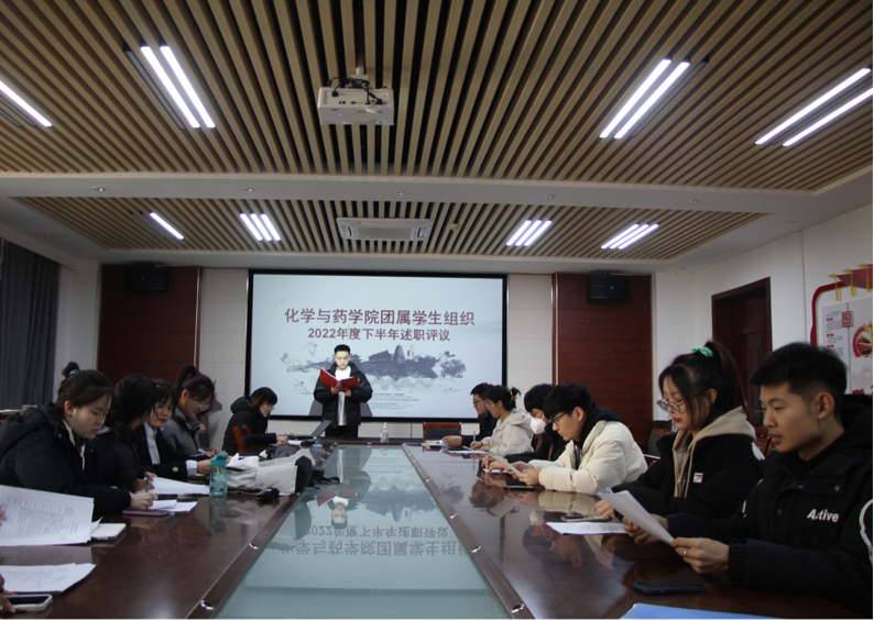 为进一步加强学生干部队伍建设,2月24日,太阳成集团tyc234cc在化学楼会议室召开2022年度下半年团属学生组织述职评议会议。学院团委书记赵莹、校级团属学生组织王琛、卓依娜以及21级学生代表出席会议,会议由学院学生会主席陈玉琢主持。