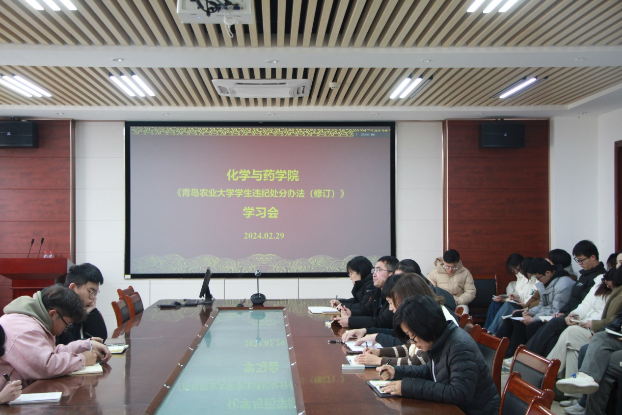 会上,全体辅导员就开学初各项工作进行具体安排,同时组织学习《青岛农业大学学生违纪处分办法(修订)》。赵莹结合春季学期学生工作部署提出三点要求:一要提高思想认识,学生干部要筑牢责任意识,发挥先锋模范作用,以身作则营造优良班风和学风;二要强化安全意识,安全无小事,学生干部应主动开展交通安全、防溺水教育、防诈骗防传销、食品卫生安全、学生公寓安全等多方面安全知识学习,及时传达相关会议要求;三要提升纪律意识,带领班级认真学习《青岛农业大学学生违纪处分办法(修订)》并时常温习《青岛农业大学学生手册》,严格执行请销假及考勤制度。