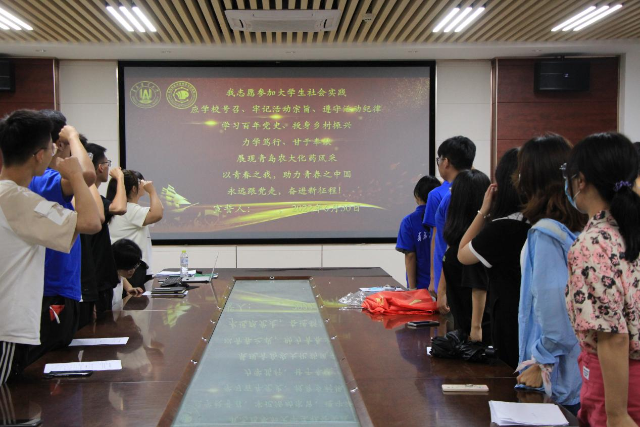 最后,学生代表李慧杰代表全体社会实践出征队伍发言,并带领全体成员,举起右臂,进行庄严宣誓。