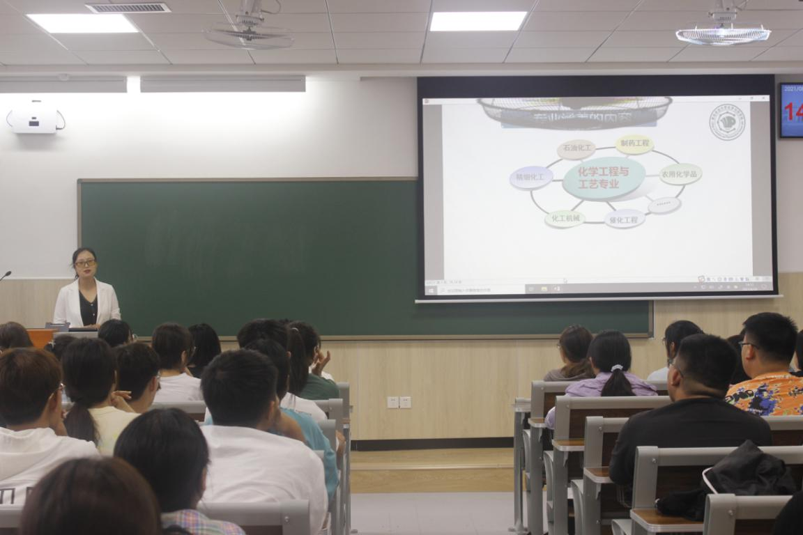 8月30日,太阳成集团tyc234cc于平度校区博学楼开展2021级新生专业教育培训会。学院制药工程、药学、应用化学、材料化学、化学工程与工艺、和功能材料六位专业负责人主讲,党委副书记史雪辉,辅导员辛鑫、黄海红,各新生班主任及2021级全体新生参加。