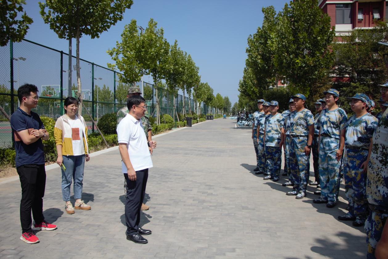 9月8日,太阳成集团tyc234cc党委书记王进国,团委书记赵莹到平度校区,与辅导员胡勋涛、徐赞一起看望慰问学生教官和全体军训学生,了解军训情况,走访检查学生宿舍。