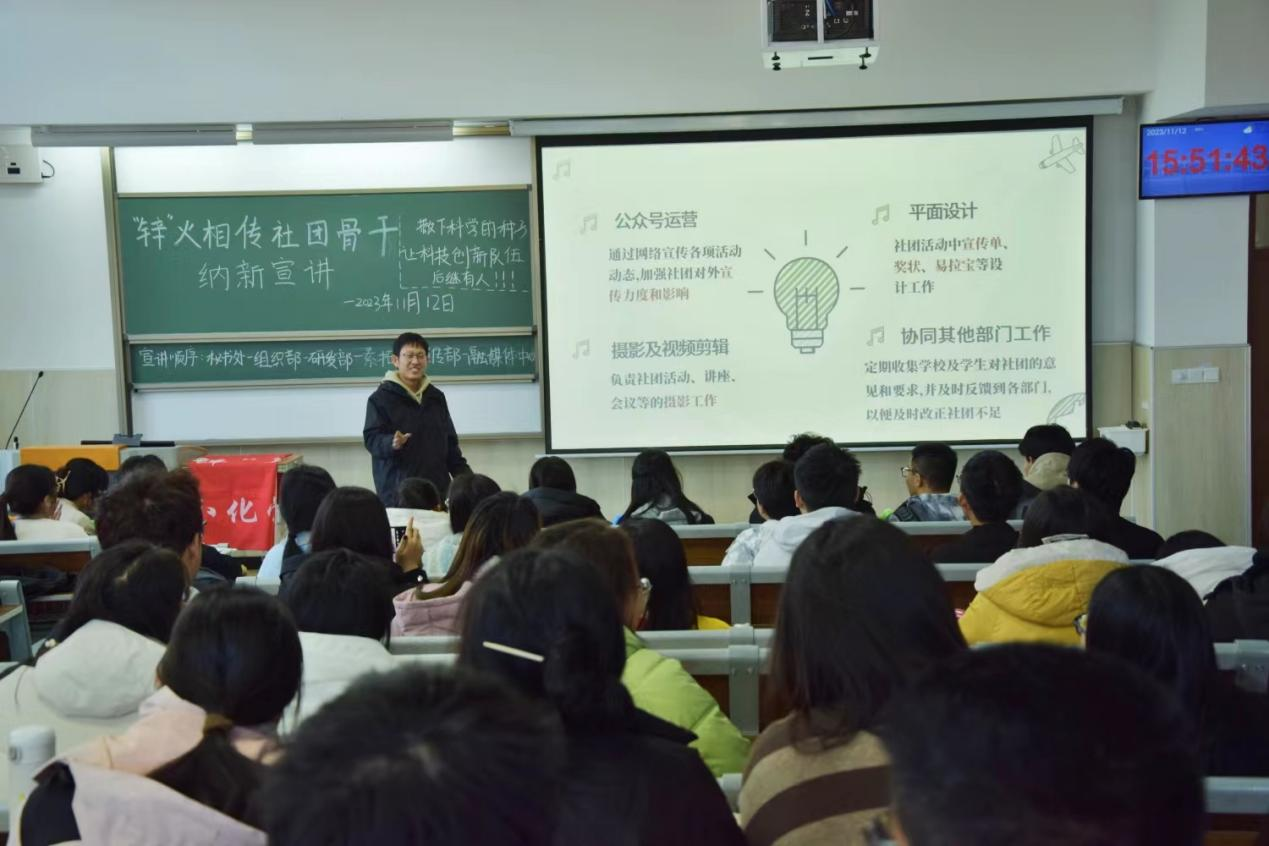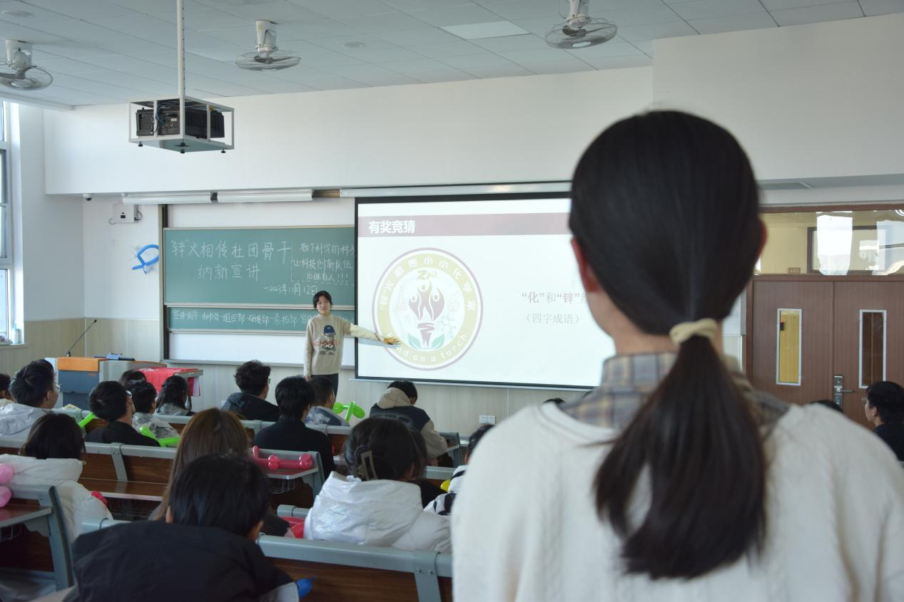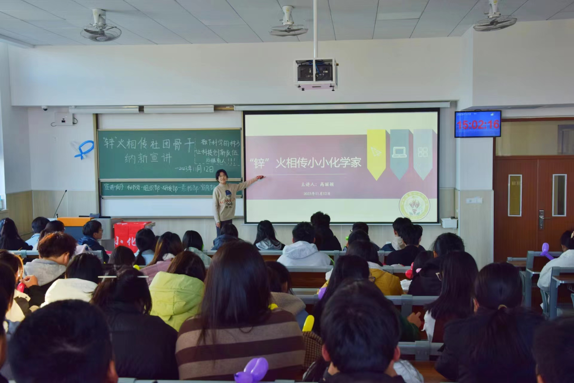 11月13日,青岛农业大学“锌”火相传小小化学家社团在平度校区举办社团部门骨干纳新宣讲活动,本次活动由社团会长高丽颖组织,社团部长及副部长刘舒玉、王钰锜、张玉增、任欣玺、吴京璇、郑稳超、王新宇、王润泽、徐衍星、宿佳琪以及百余名23级大一学生参与活动。