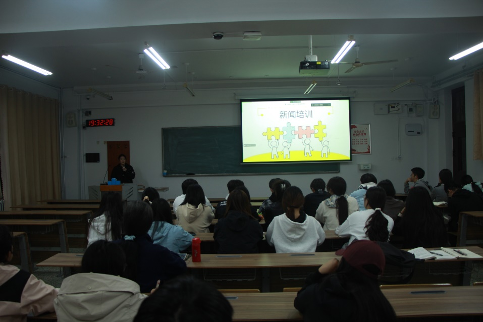 会议伊始,贾莹蕊对本次培训会议的内容进行概括,介绍了将进行新闻培训的人员及培训项目的次序,强调此次培训对于促进宣传阵地建设、提升宣传工作水平的重要性。随后,侯星宇带领大家学习新闻的写作。她从新闻结构、规范用语、信息准确、写作素养四个方面进行讲解。她强调,写新闻的过程中一定要遵守新闻的结构,要对新闻内容有一个大致的思路框架,同时注意细节,如正确使用教师职称等。期间,侯星宇还结合实际案例进行分析,使同学们更加直观地理解了新闻写作的要点。接着,张玉增带领大家学习新闻摄影,他从相机的使用、摄影要求及目的、会议类拍摄角度及要求、抓拍技巧构图法则四个方面进行培训,教导大家如何利用相机或手机拍出高质量的会议照片,他强调,在会议类新闻拍摄的过程中一定要拍到第一张ppt,并且建议在前十分钟完成整体的拍摄。张玉增还展示了一些优秀的摄影图片,逐一分析这些照片的拍摄手法,帮助同学们更好地理解摄影技巧。