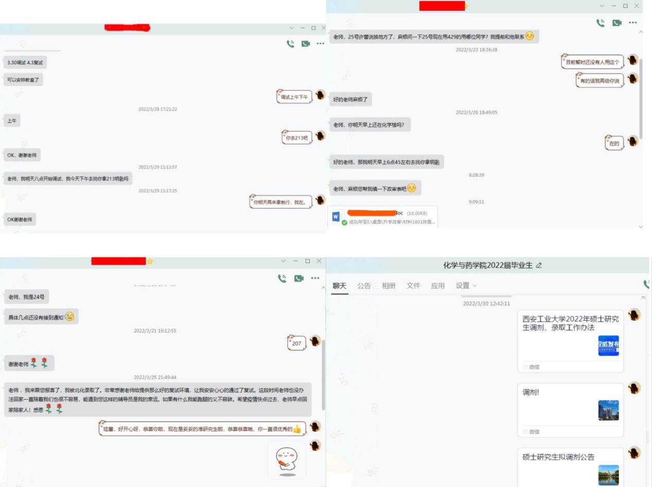 针对不同考生不同时段的面试空间需求,学院尽全力调动一切可用资源,为学生参加复试保驾护航。学院整理并开放所有适合复试的实验室、会议室、办公室等近30个场地,为考生提供高质量的复试空间,并积极辅助学生联网、调试设备、布置现场。同时,积极为学生联系调剂学校,转发调剂信息,确保过线一个录取一个。