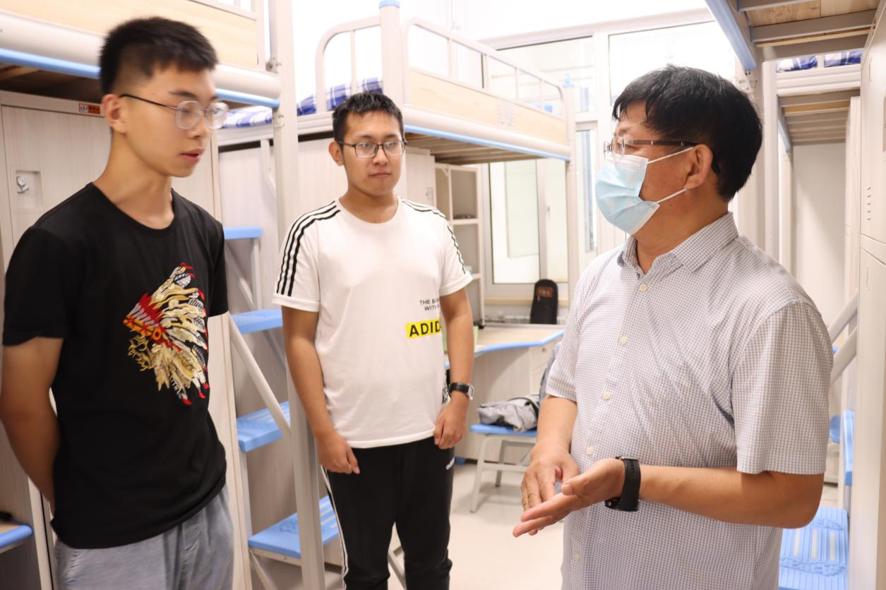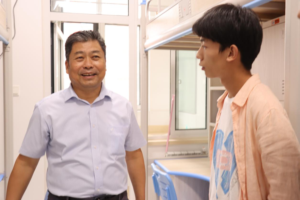 走访过程中,朱连勤深入新生宿舍,查看了宿舍的住宿环境,各项设施的配置。询问了新生的入住情况,并与新生亲切交谈,切实了解学生的专业,入校感受等。朱连勤鼓励同学们要对所学专业进行充分了解和初步规划,勉励同学们要尽快完成角色转换,适应新环境、融入新集体,珍惜大学四年青春时光,心无旁骛求知问学,做一名“立大志,成大才”的新时代青年,肩负起新时代新青年的历史使命和时代责任。朱连勤还强调了疫情防控相关要求,他表示,希望同学们能够理解学校“非必要不要外出”的特殊要求,做好防疫工作。