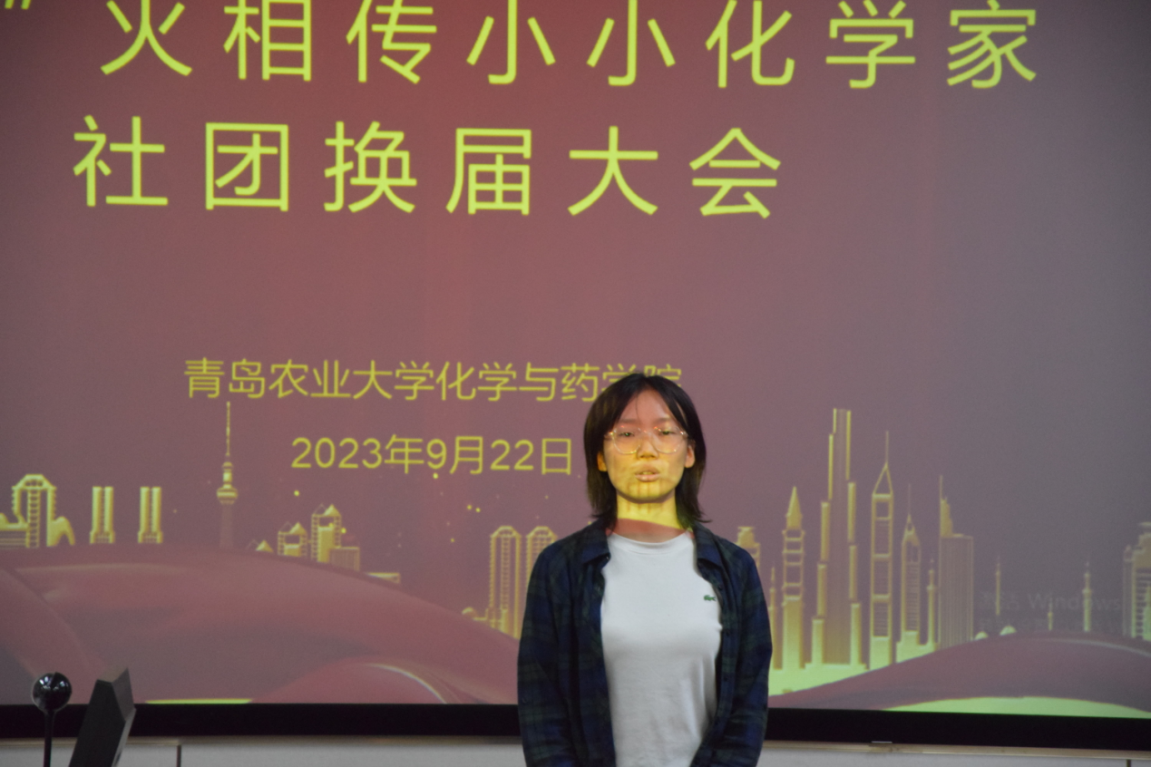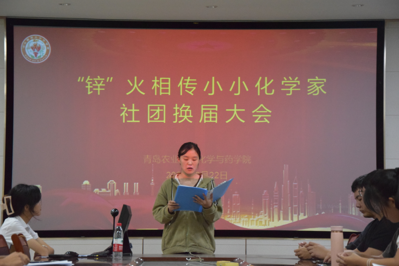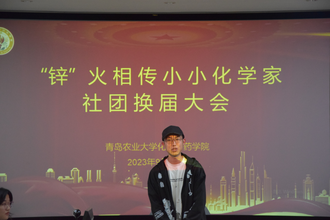 时光荏苒,白驹过隙。在校院领导、社团指导老师黄海红的引领下,在各位同学的共同努力下,“锌”火相传小小化学家社团成功升级为校级社团。为保证社团工作的连续性,促进同学们的交流与合作,“锌”火相传小小化学家于9月22日在化学楼会议室207举行2023学年度社团换届大会。会议由社团指导老师黄海红主持,出席本次会议的有会长郑美湘、秘书处部长温增恒、秘书处副部长柳文杰、研发部部长于晓龙、研发部副部长陈玉琢、组织部部长李帅以及新一届会长团、团支部成员及竞选人员。