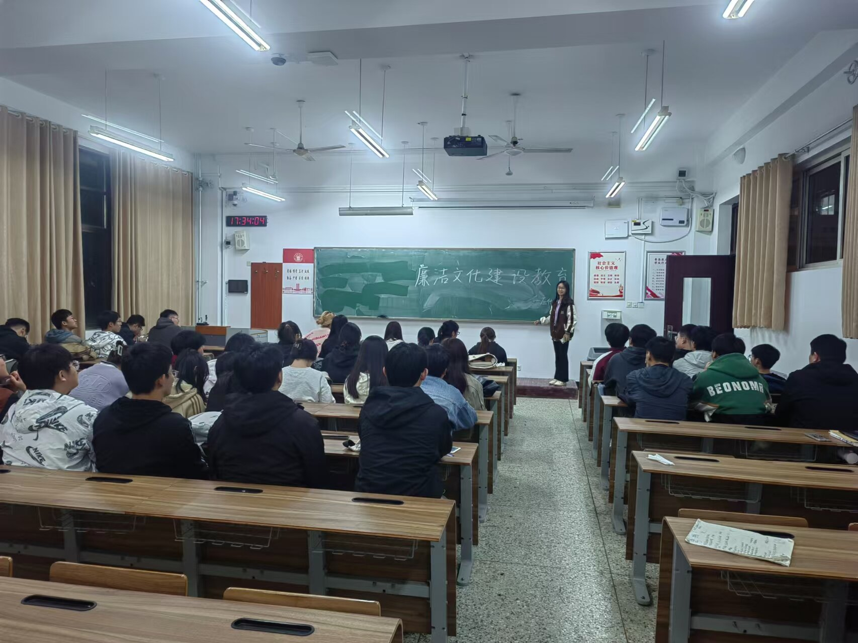 在团课中,各班学习了廉洁教育的重要性,作为新时代的大学生,要树立正确的世界观、人生观、价值观,自觉抵制各种不良风气的侵蚀,培养高尚的道德情操和职业操守,每位同学要从自身做起,树立廉洁意识,弘扬正气。各班通过具体案例分析,深入揭示了腐败的危害性,警示大家要时刻保持清醒的头脑,会后,同学们结合学习内容思考如何在日常工作和生活中践行廉洁,以身作则,为营造风清气正的校园环境贡献力量。