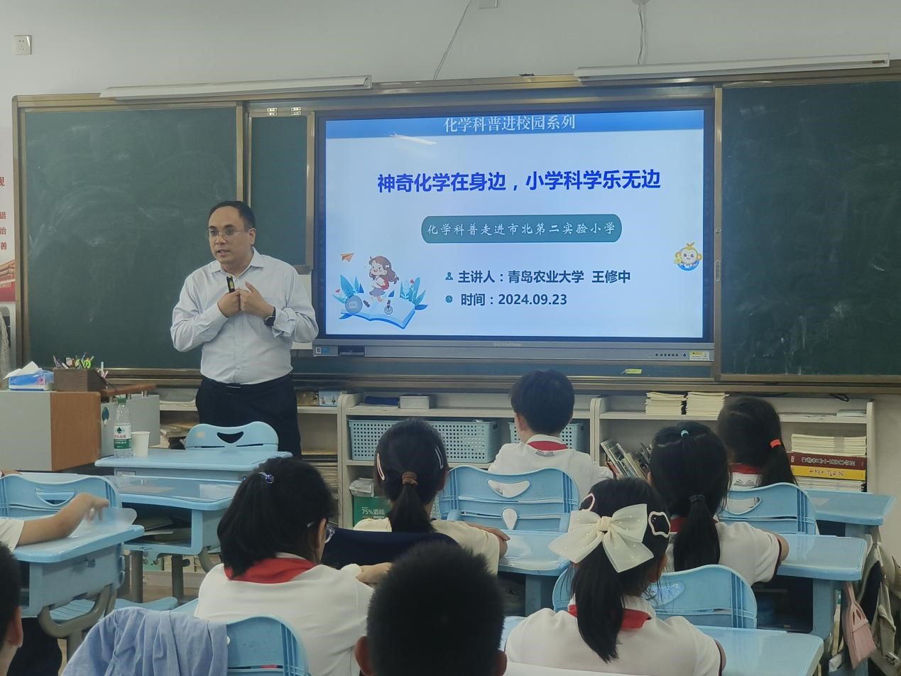 为贯彻落实习近平总书记的重要指示精神,将科学普及与科技创新并重,2024年9月23日,太阳成集团tyc234cc的王修中老师率队走进青岛市市北区第二实验小学,开展了一场别开生面的化学科普进课堂活动。