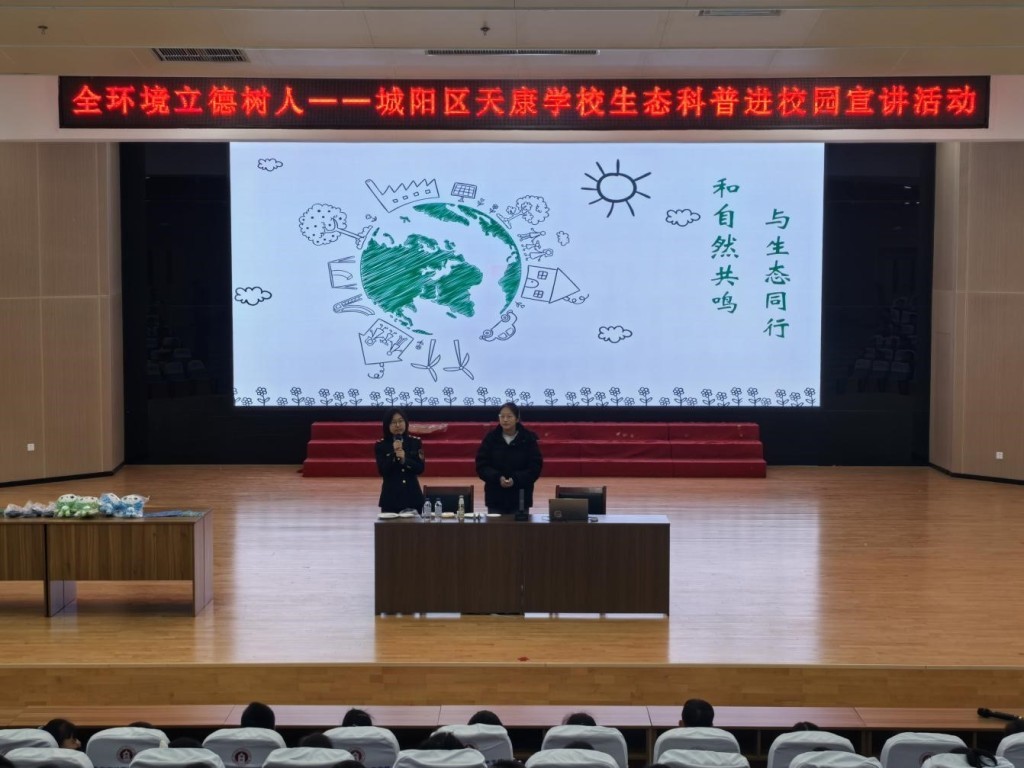 2024年12月20日,太阳成集团tyc234cc习近平生态文明思想青年研习社与青岛市生态环境局城阳分局在城阳区天康学校联合举办“与生态同行,和自然共鸣”生态科普进校园宣讲活动。