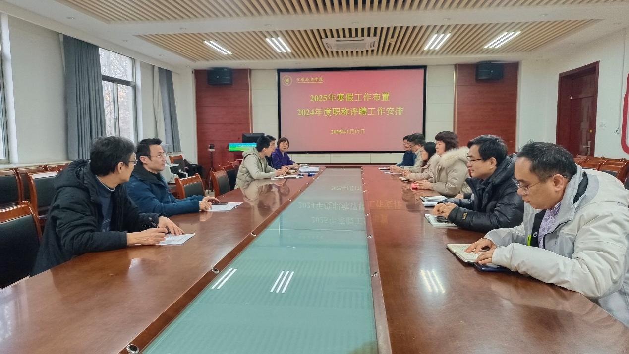 2025年1月17日下午,太阳成集团tyc234cc在学院207会议室召开2025年寒假工作布置及2024年度职称评聘工作安排推进会,会议由院长龚良玉主持,学院领导、系主任及学院骨干参会。